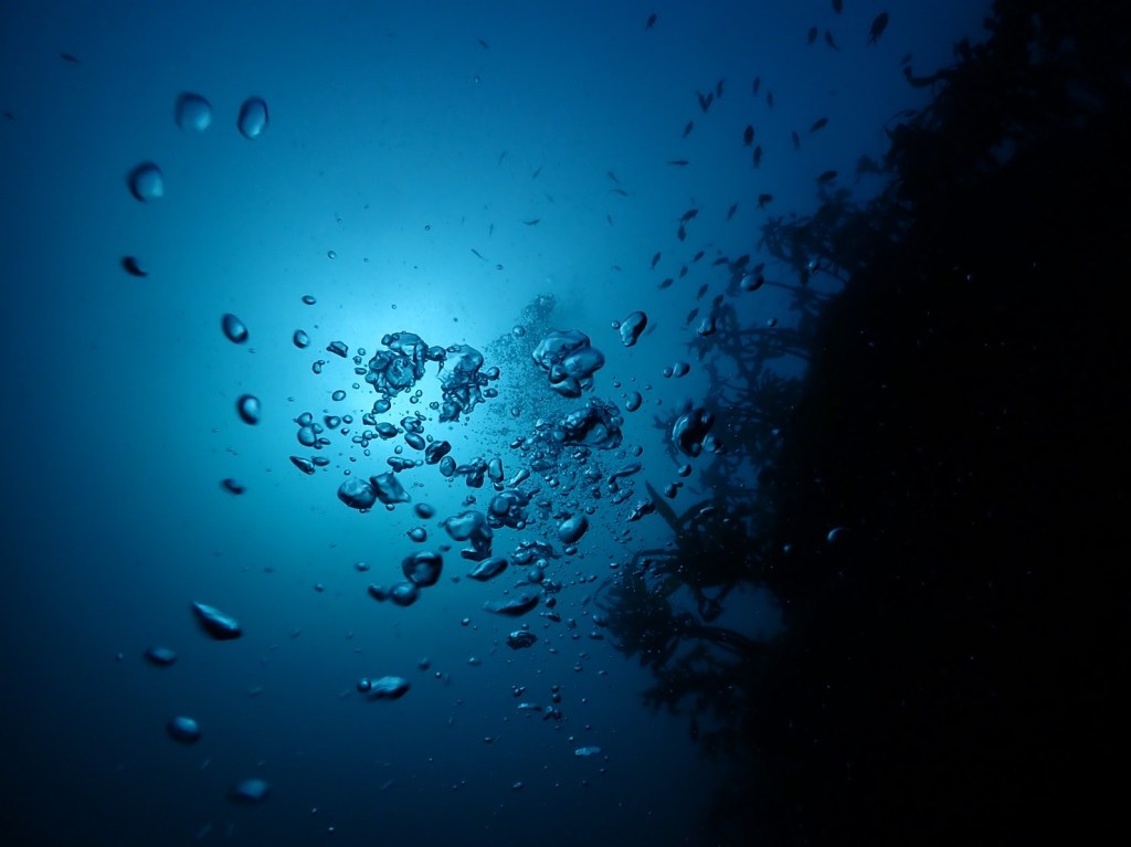 カジメと泡と自然光がまたいいですよね。