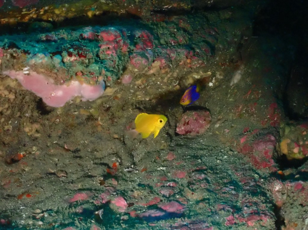 コガネスズメダイ、レンテンヤッコの幼魚が。