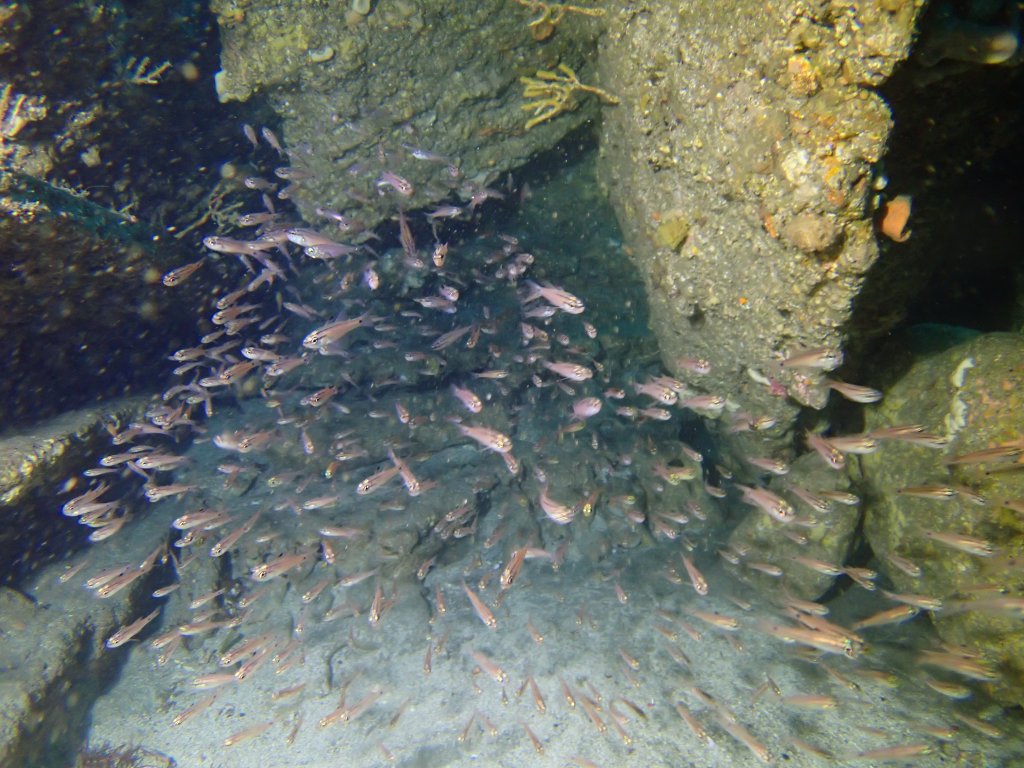 ネンブツダイ群れ。根のトップでもいるんだなーっとまたいる場所が面白かったです。