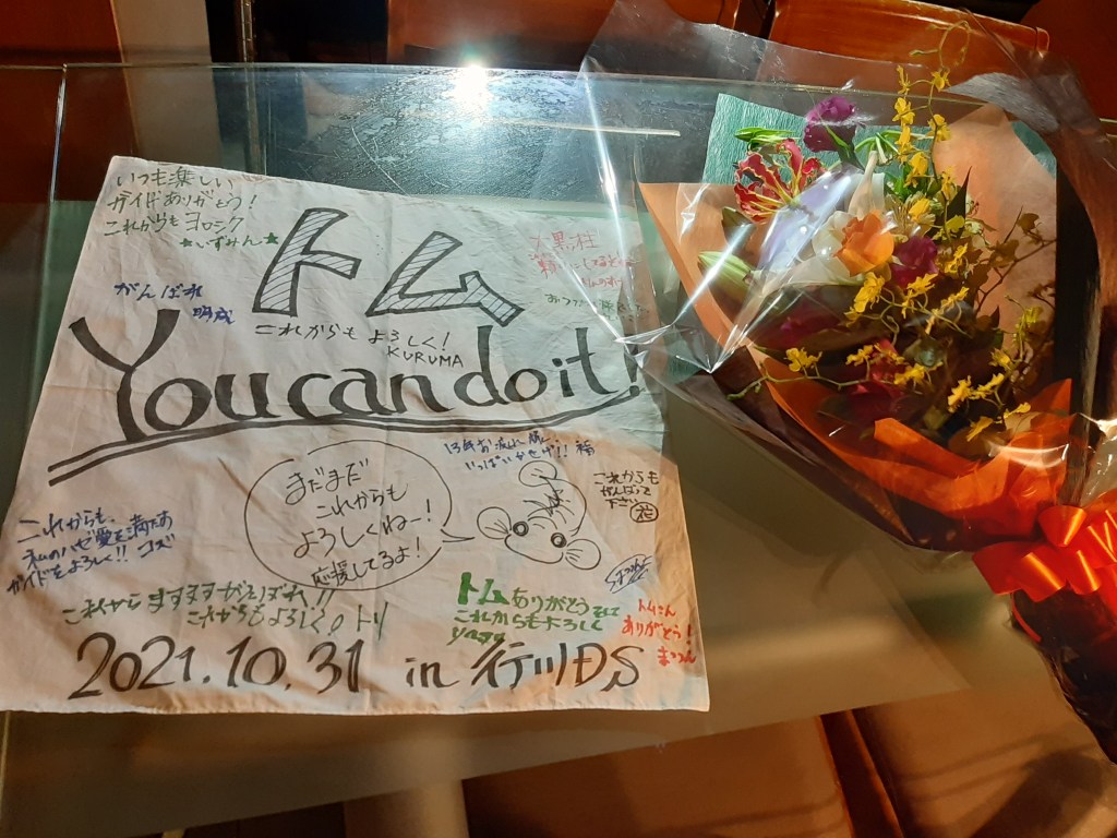 退社日には、いつも一緒に潜ってるダイバーさんがサプライズをしてくれました。