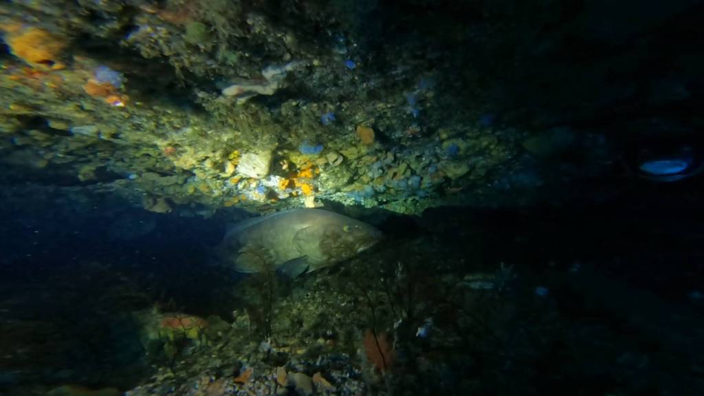 大きなクエやイシガキフグが棚で隠れているのを確認。