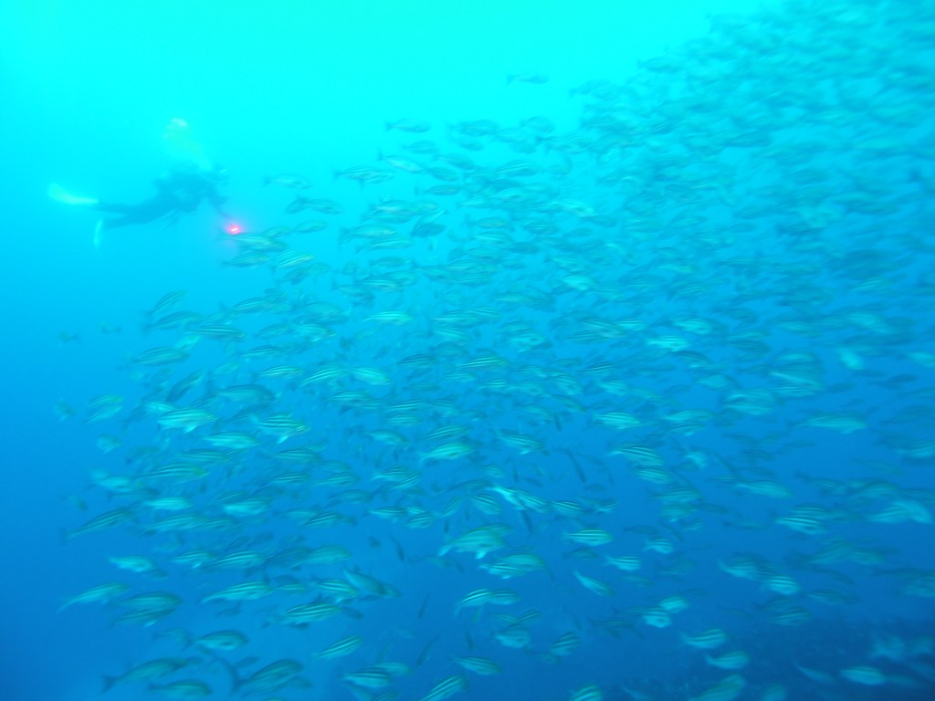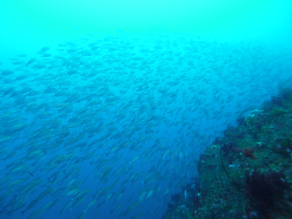 ドロップオフの地形景観も見物で群れものや回遊魚も出てます。