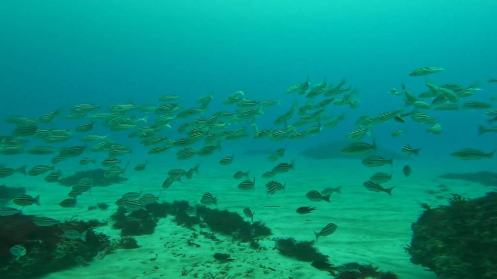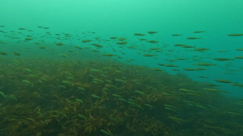 ブイ近くの中央クレパスの地形に魚影の群れが。