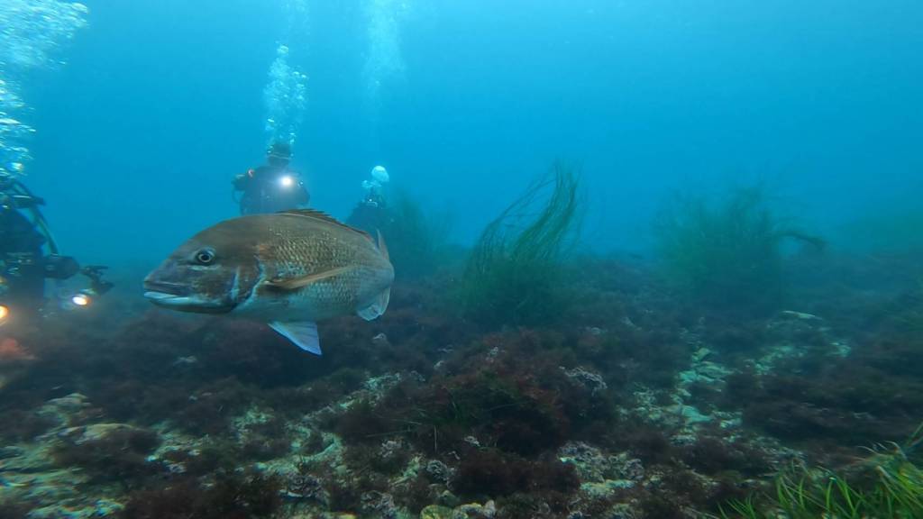 漁礁が点在していてそこに集まる魚などを観察。