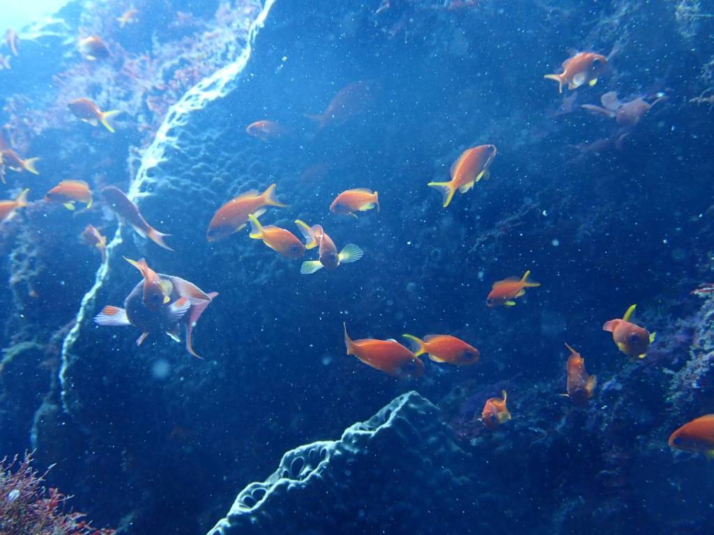 キンギョハナダイの群れがきれいに泳いでいる姿を確認したりと。