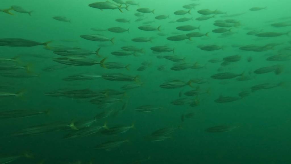 そこから観察していたら。少な目ですがカンパチも所々混じってました。