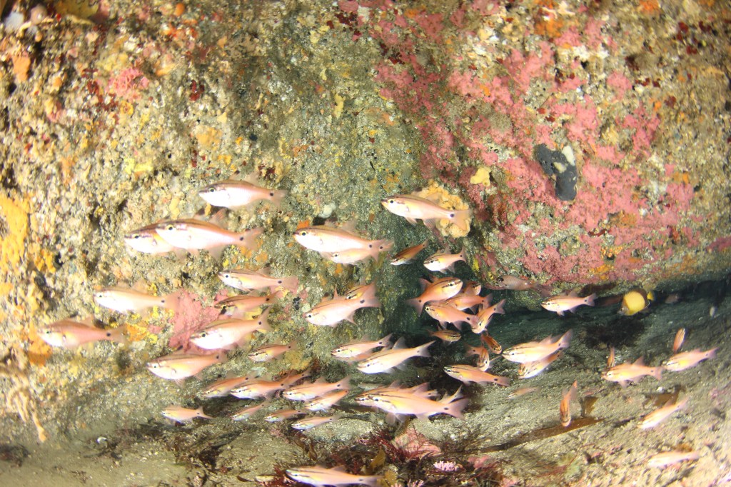 漁礁が点在していてそこに集まる魚などを観察。