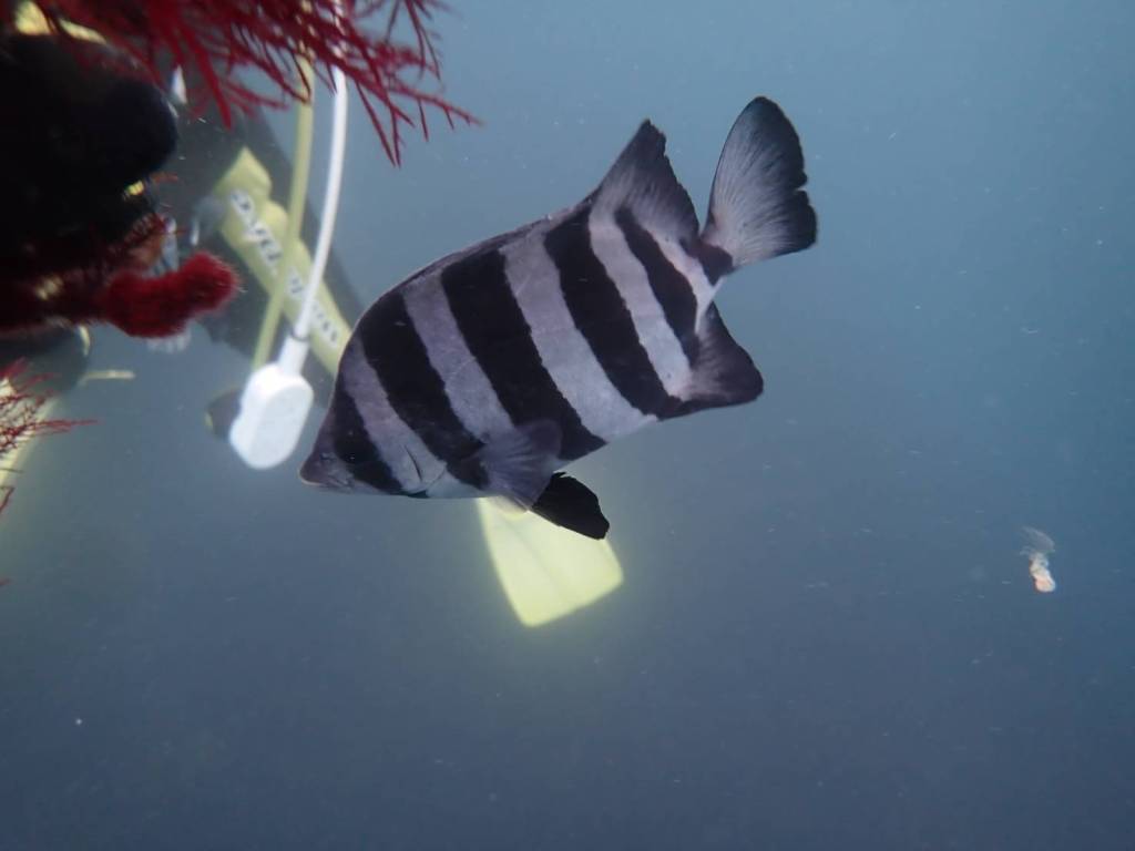 イシダイ幼魚がダイバーに寄ってきてくれて本当かわいいです。