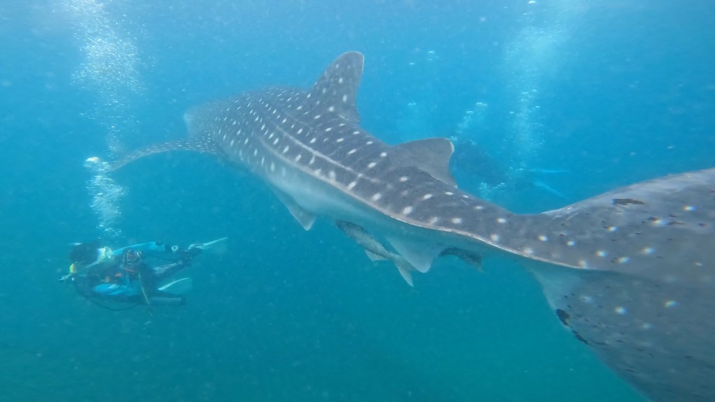 今日は、ジンベイザメと一緒に。