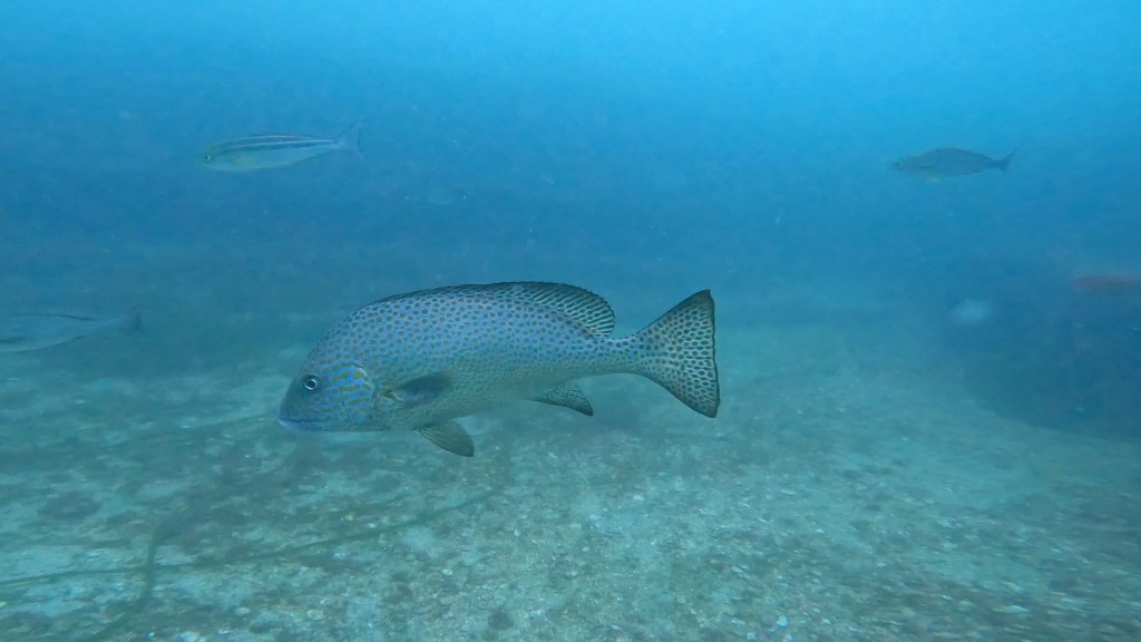 中層から水底にかけて群れが降りてくるなーっと思ってみてみるとイサキ群れが。