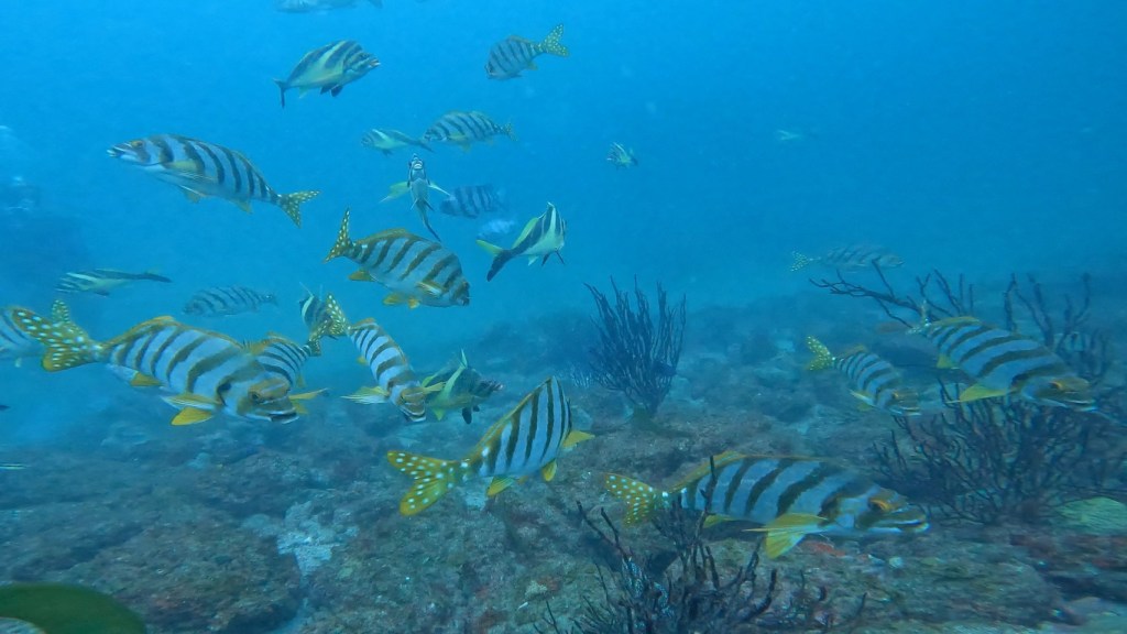 そこからネジリンボウ観察して漁礁方面にいくと。イナダの大群に遭遇!波左間出会うのは初めてでカメラ間に合わなかったです。