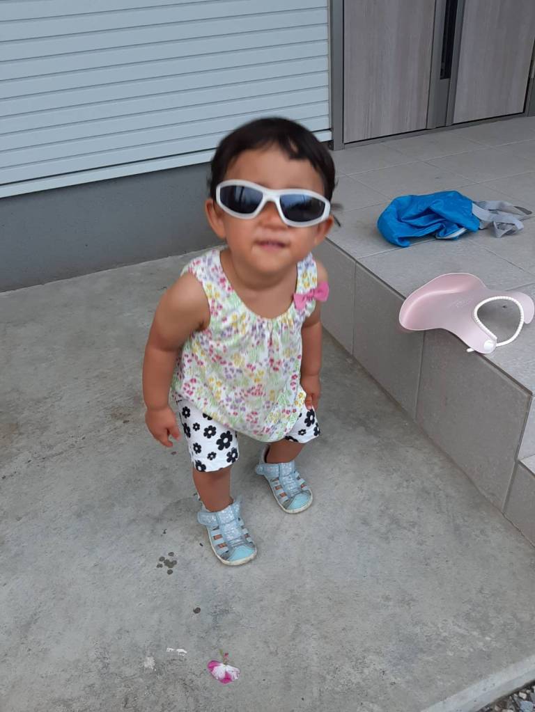 お腹いっぱいなので食べるのやめて大人のサングラスつけたり。走り回ったり。