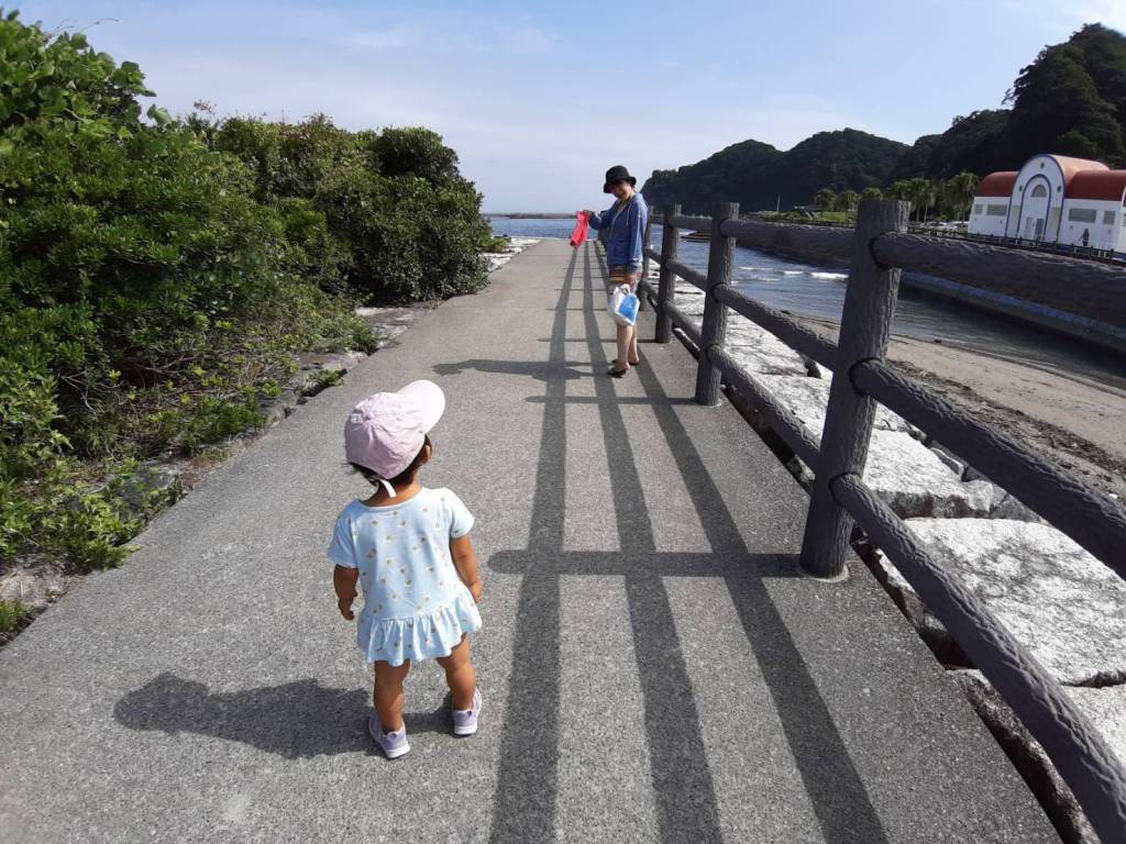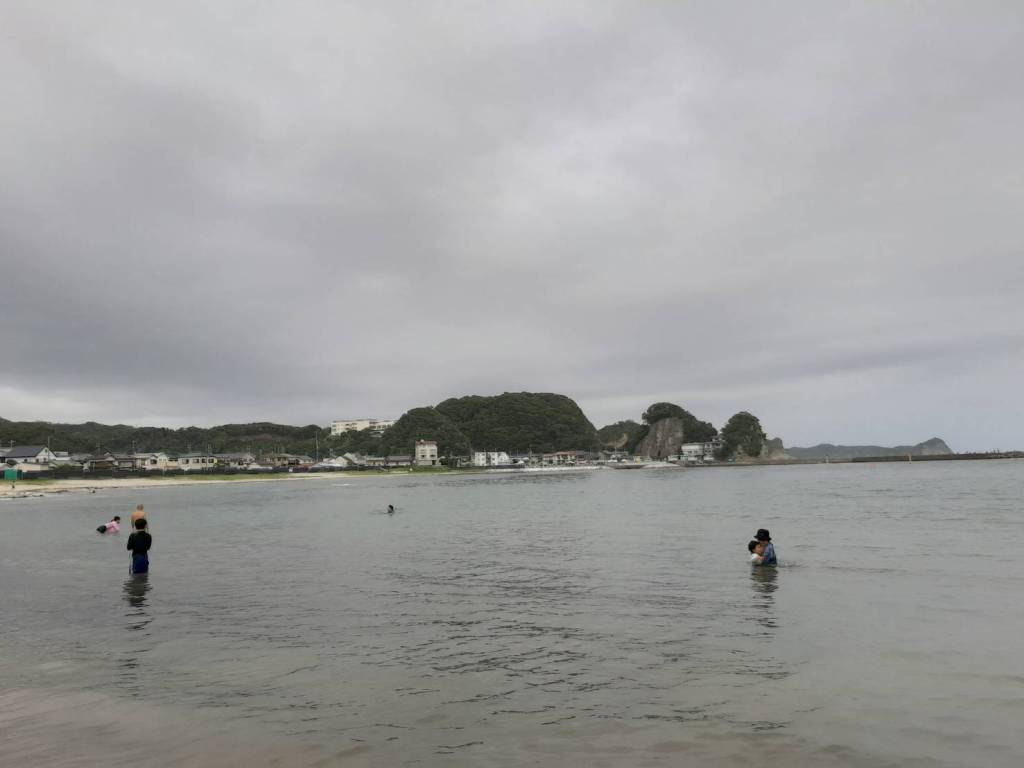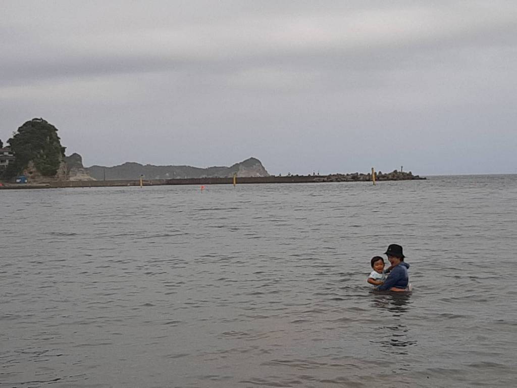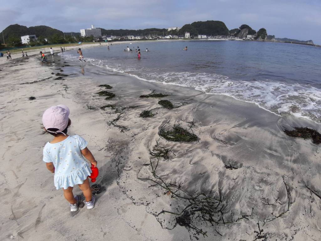 前は、御宿海岸では波打ち際に行くと音が怖いのか走って逃げてたけど。