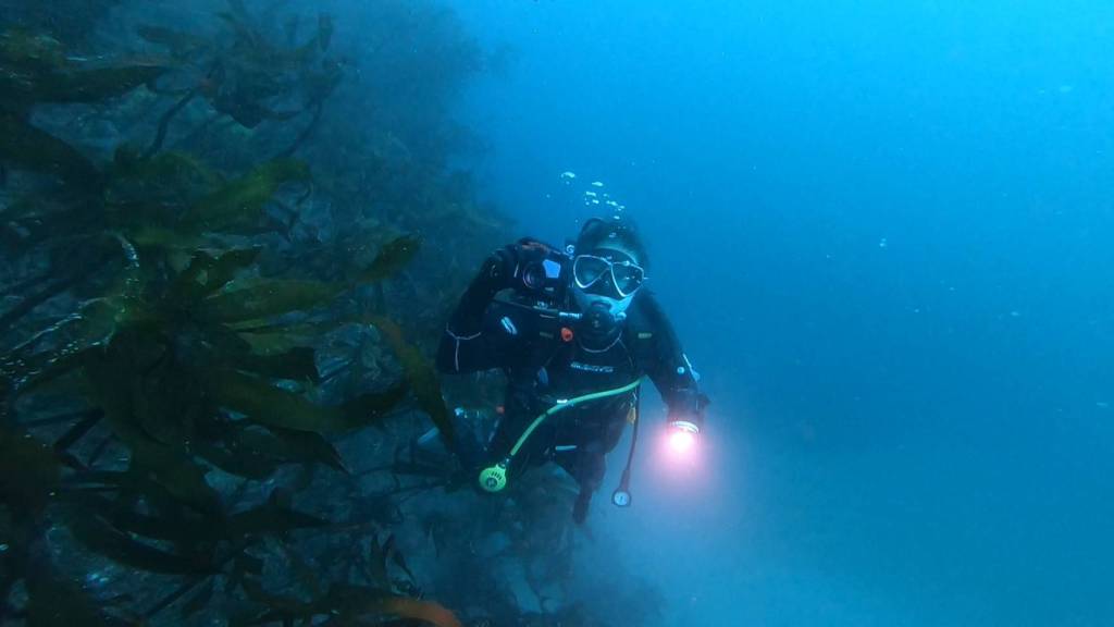 千葉県勝浦市鵜原の海でスキューバダイビング。