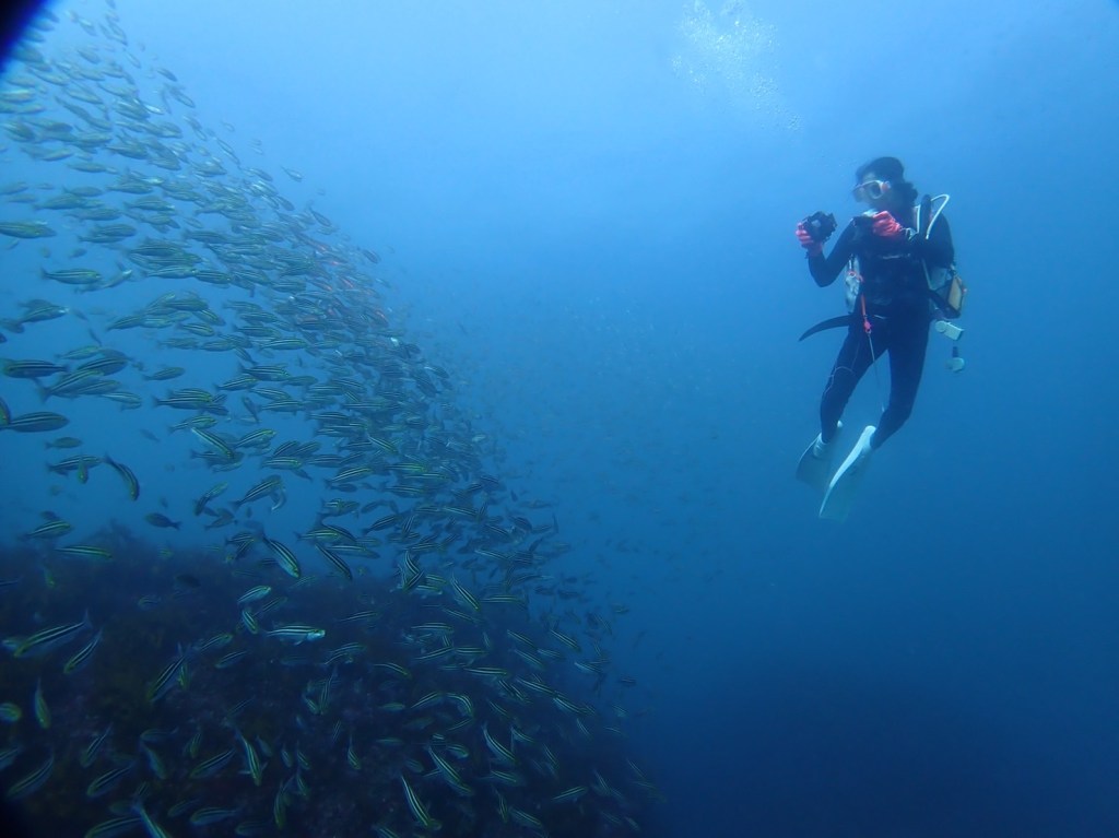 流れもそこまで入ってなく潜れて。群れ・地形などが好きということで。