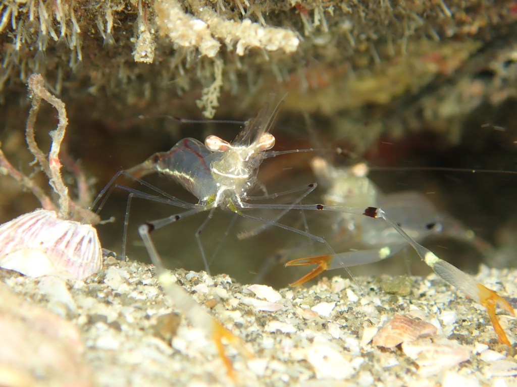 ハタタテハゼや奥にオトヒメエビの小さなサイズも確認。