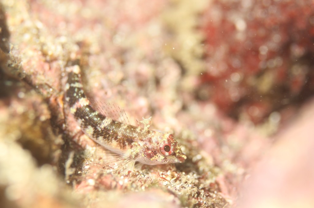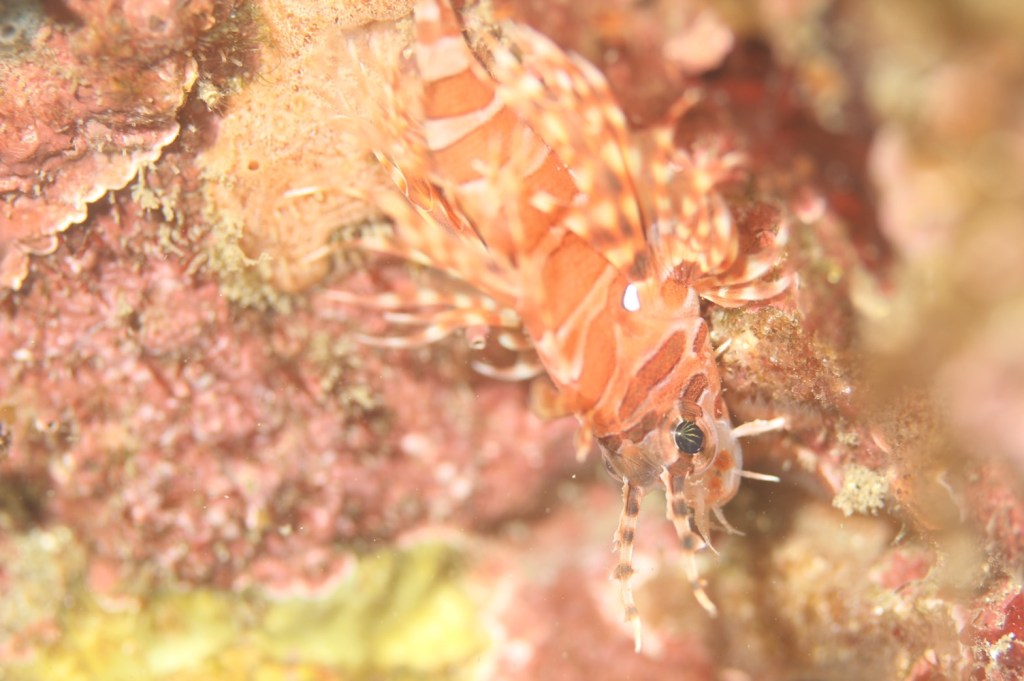 うねりは落ちる予報だったので風波の影響の中ビーチ潜水。