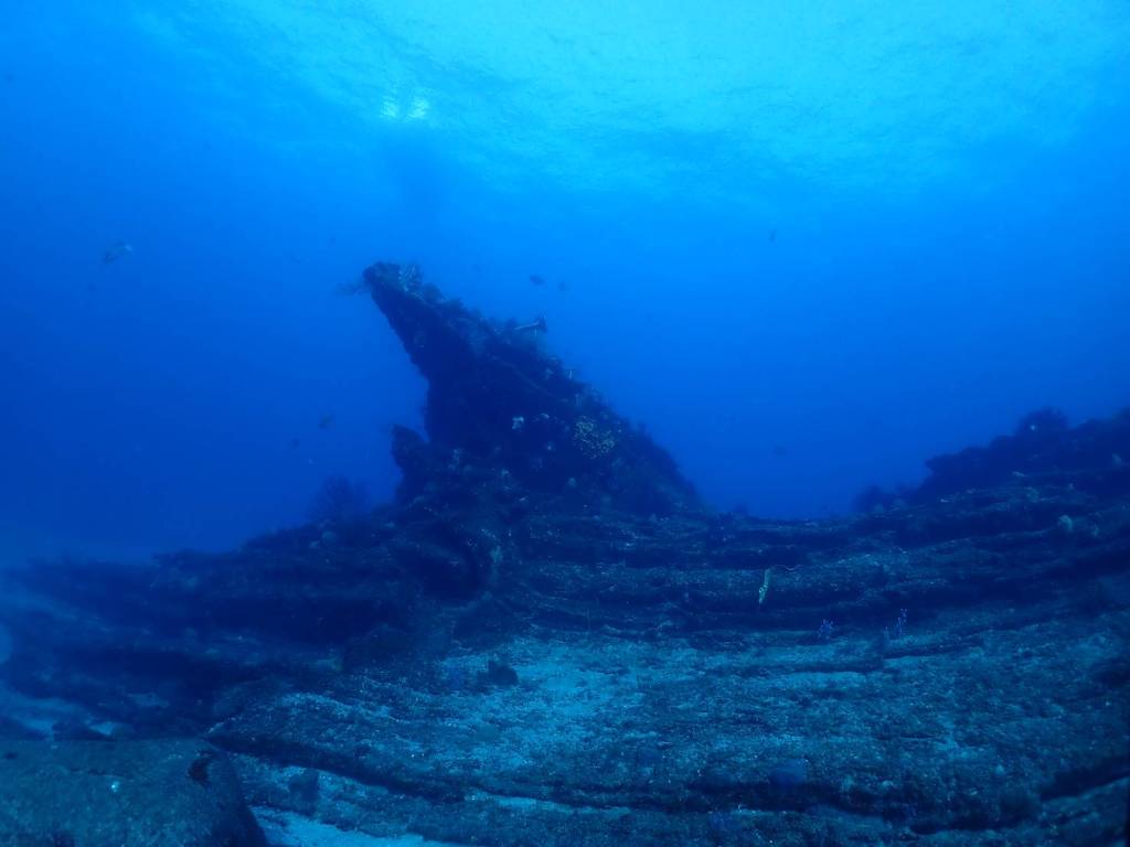 水底から船が見えるほどの透明度です。