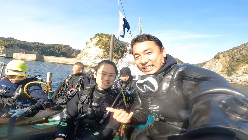 水中は、自分で意識して潜ってるのが見られて。ドライスーツの快適さも知ってもらえてよかったです。また潜りにいらしてくださいね。