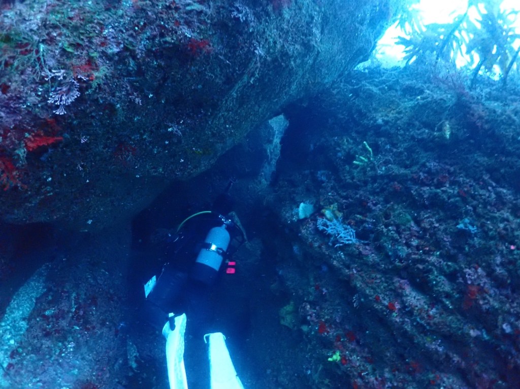 特徴的な地形が至る所に点在しているマグロ根を水中散歩してきました。