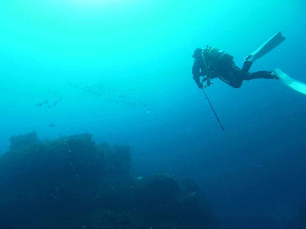 地形の景観みながらゆっくり泳ぎ魚影を探します。