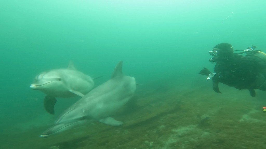 2頭と一緒にダイバーさんも並走して泳いだり。