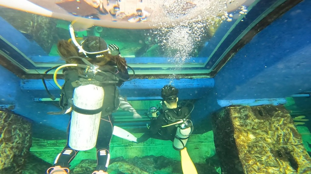 海ではなかったので水温は、26.4度と温かくウェットスーツで潜ってきました。