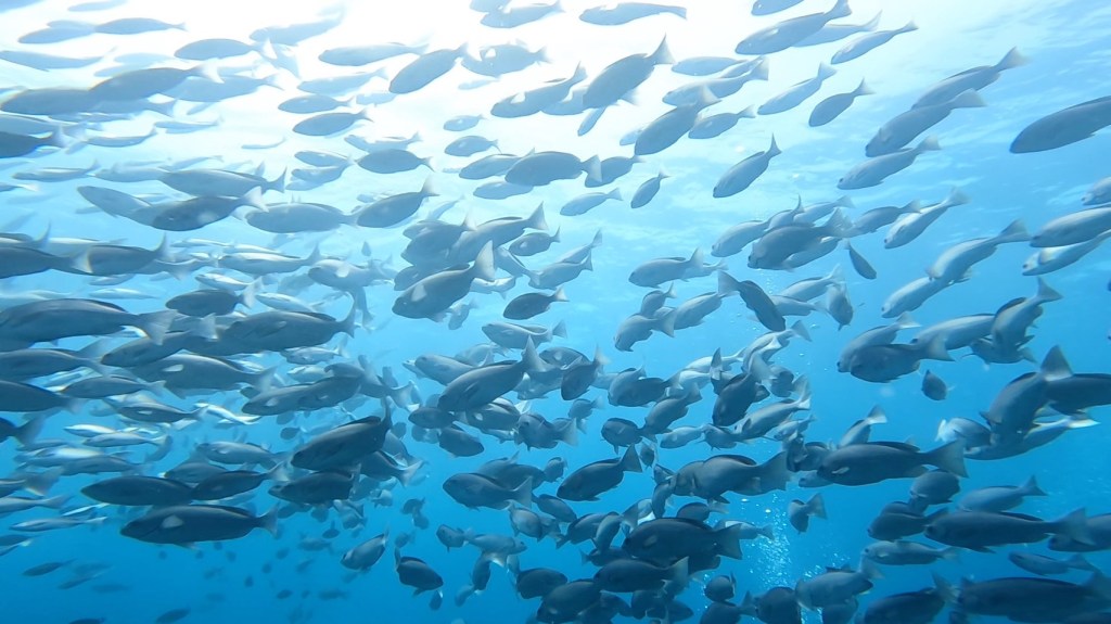 すると、壁のようなメジナの大群が。