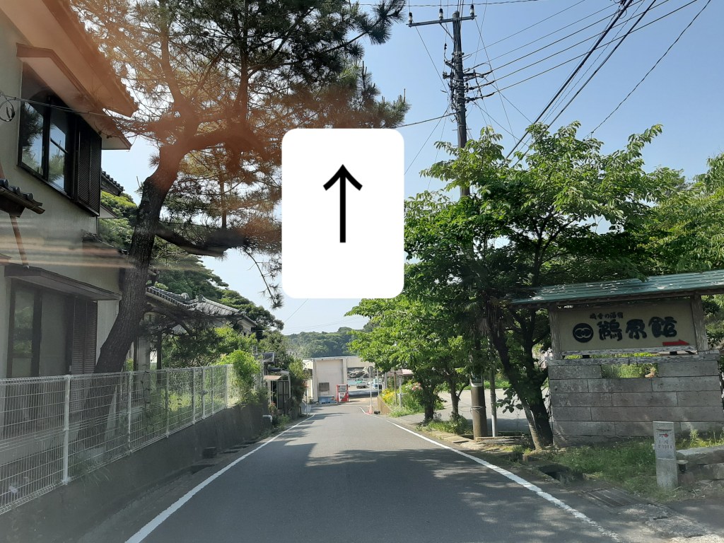 現地施設の駐車場が見えてくるのでそちらまでお越しください。
