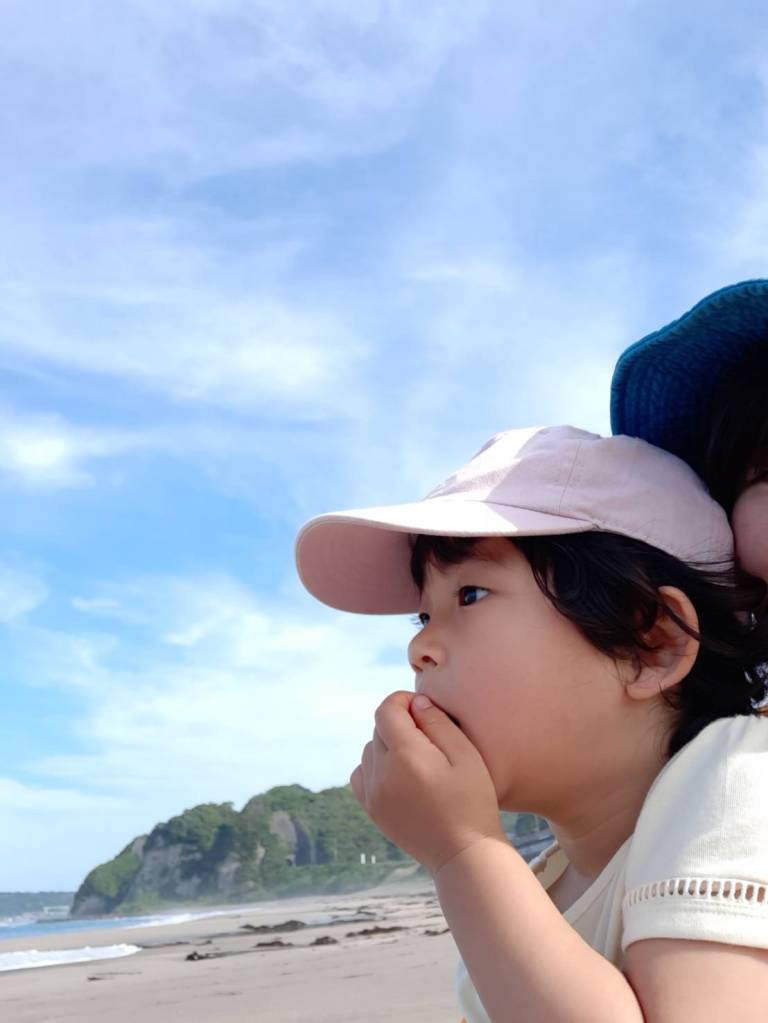 砂浜でお散歩もかねて家族で部原海岸に。