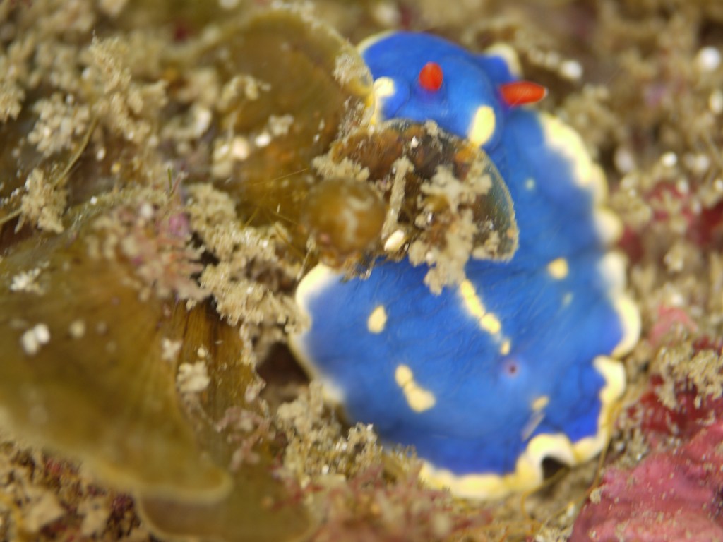 根沿いではウミウシ類なども観察出来。漁礁が点在している場所では魚影が入ることも。
