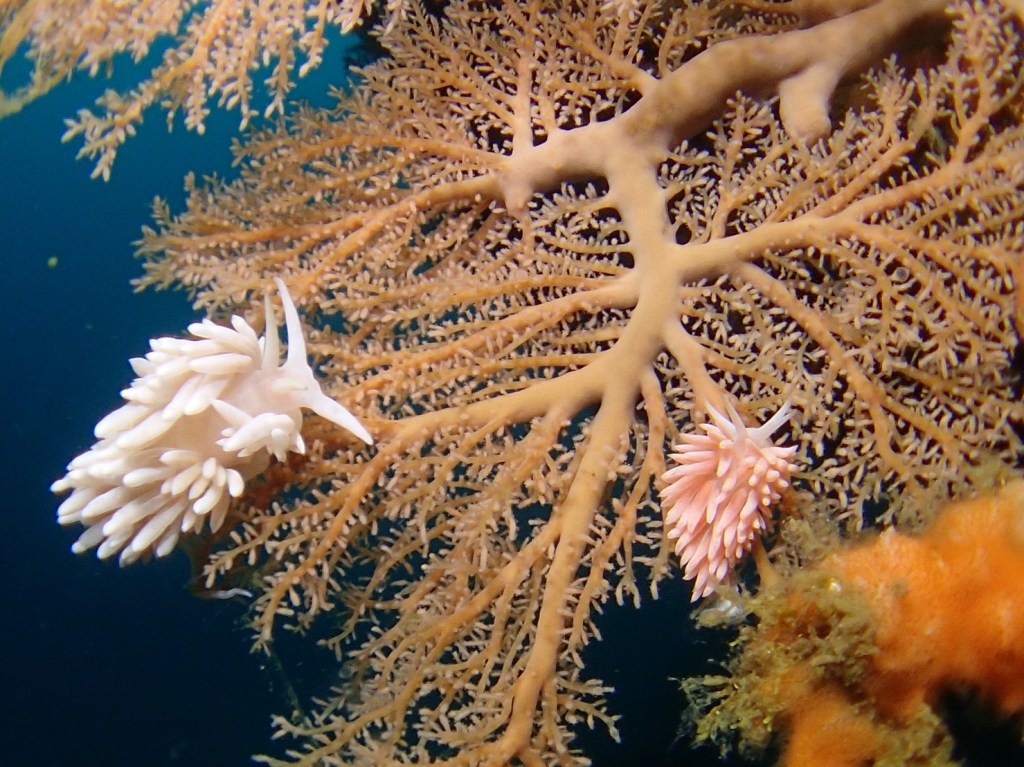 根沿いではウミウシ類なども観察出来。漁礁が点在している場所では魚影が入ることも。
