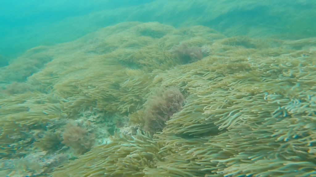 イソギンチャク群生では、クマノミが幼魚から成魚と観察出来ています。
