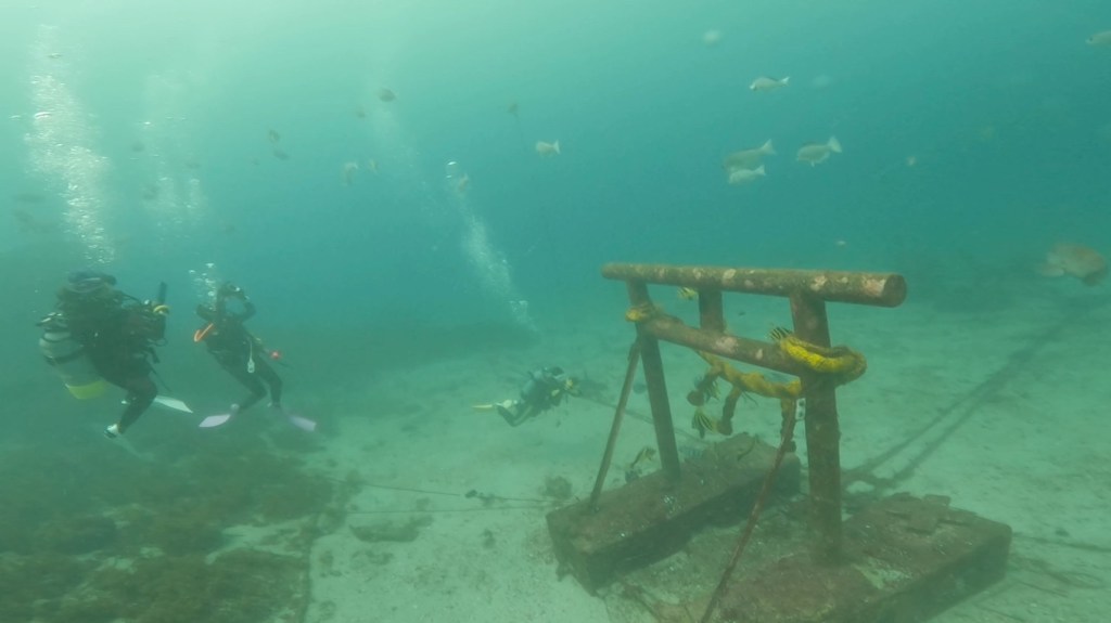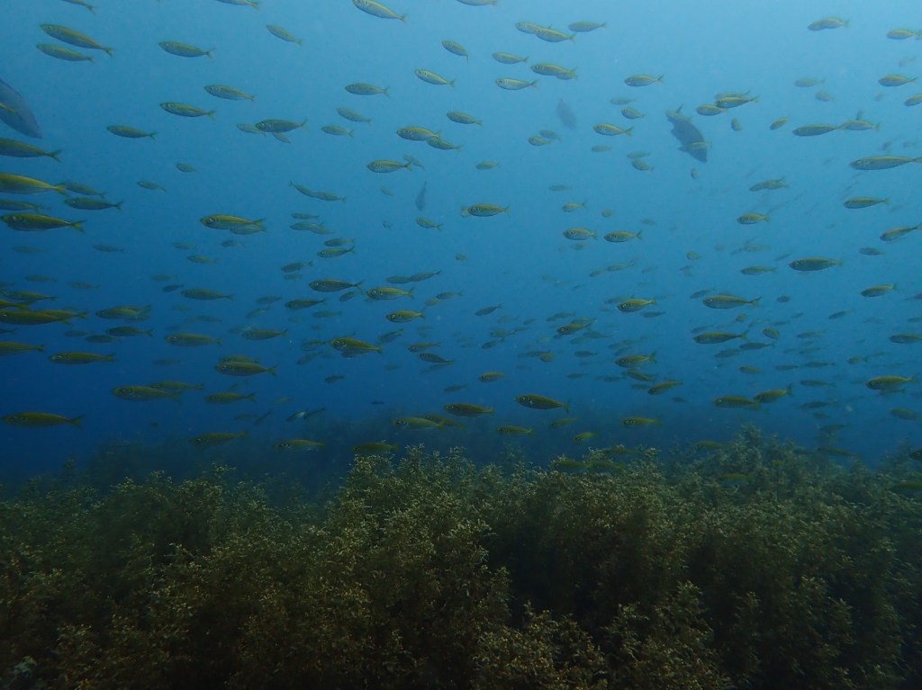 こちらでは大きな人口漁礁の中や外を泳いだりするのも良くて。