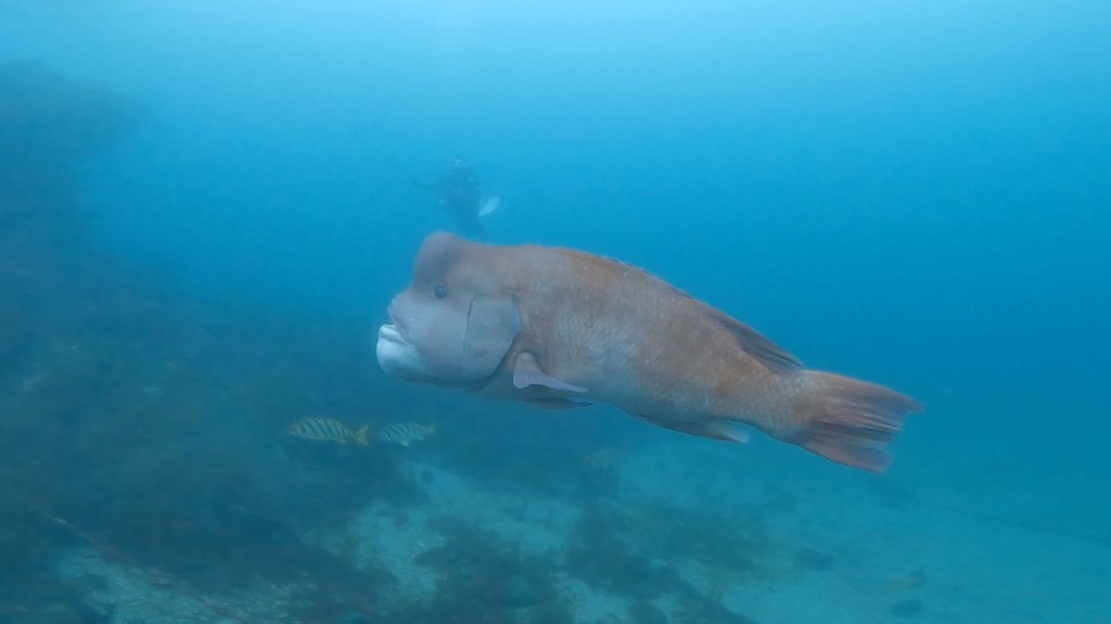 コブダイ(頼子)が元気よくダイバー近くまで寄ってきてくれました。