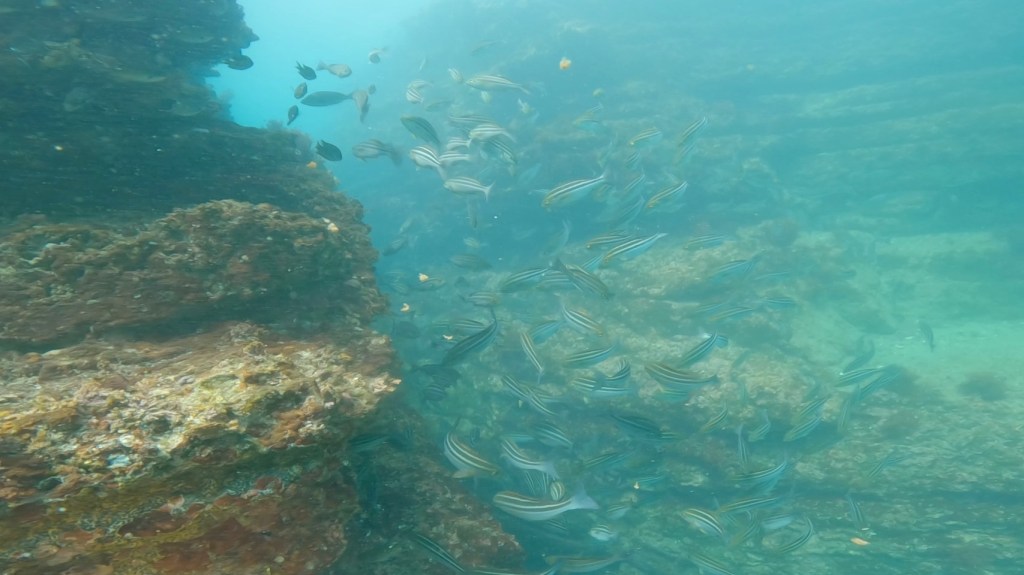 イサキが沢山群れていて。棚沿いでは、