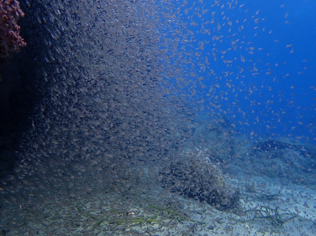 水面近くでは、ツムブリの幼魚が観察出来たり。