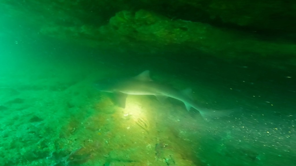 起伏ある地形やネコザメの卵や成魚など。