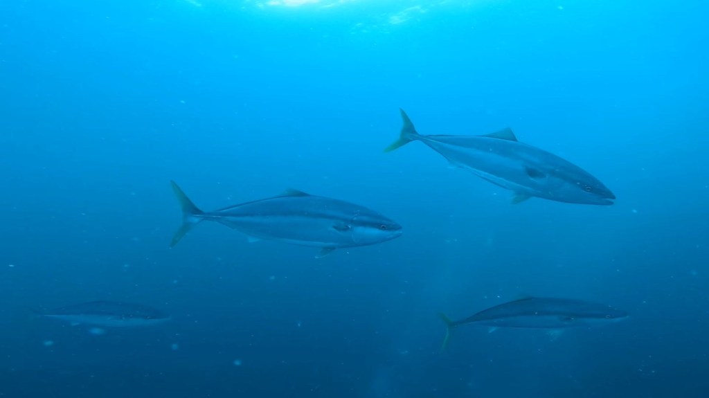 ブリサイズの群れも入って迫力あるサイズで近くを泳いでくれました。
