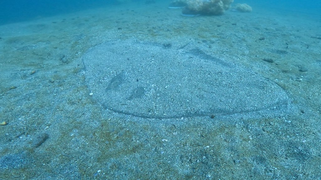 平べったい個体で砂中に隠れているためサイズ感が写真で伝えきれないのが悔しいです。