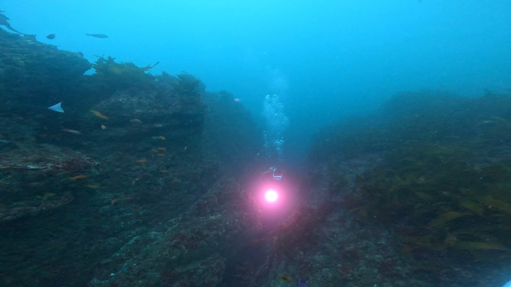 トビエイの後にはワラサの群れも。奥だったので一瞬の影でした。