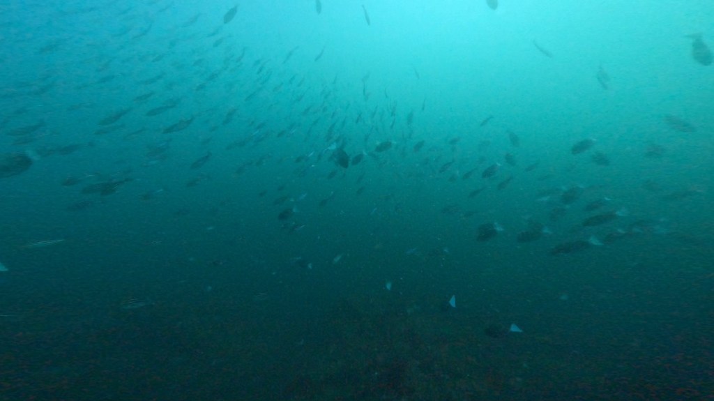 キンギョハナダイ群れが目立ち。単体では大きなコブダイが泳いでいるの観察。