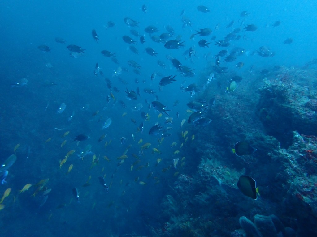 回遊魚や大型種との出会いがあるので一度潜るとワイド系のダイバーさん潜りたくなるポイントとなります。
