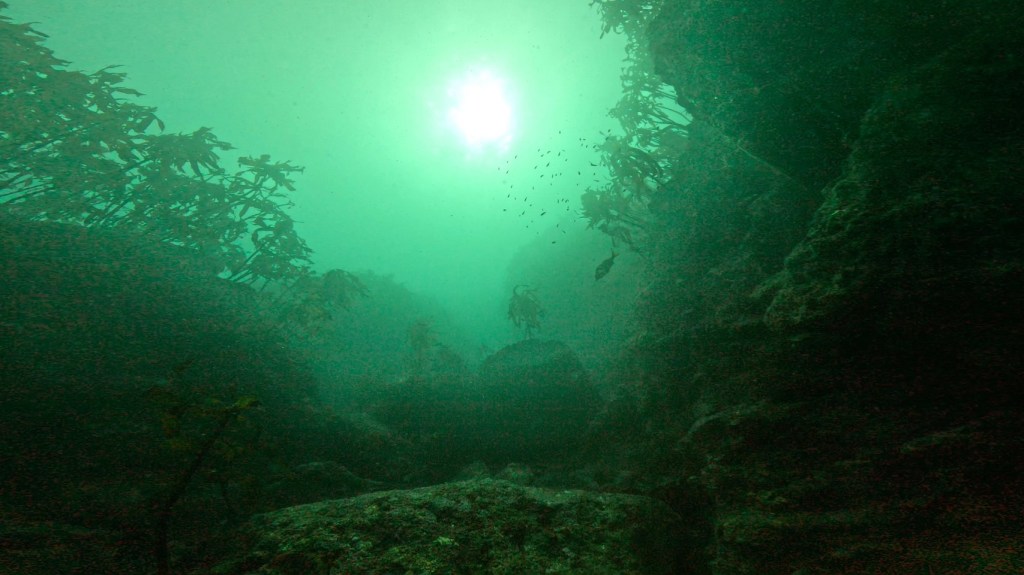 エントリーして水底を見下ろすとカジメ林が続き水底から上を見上げると