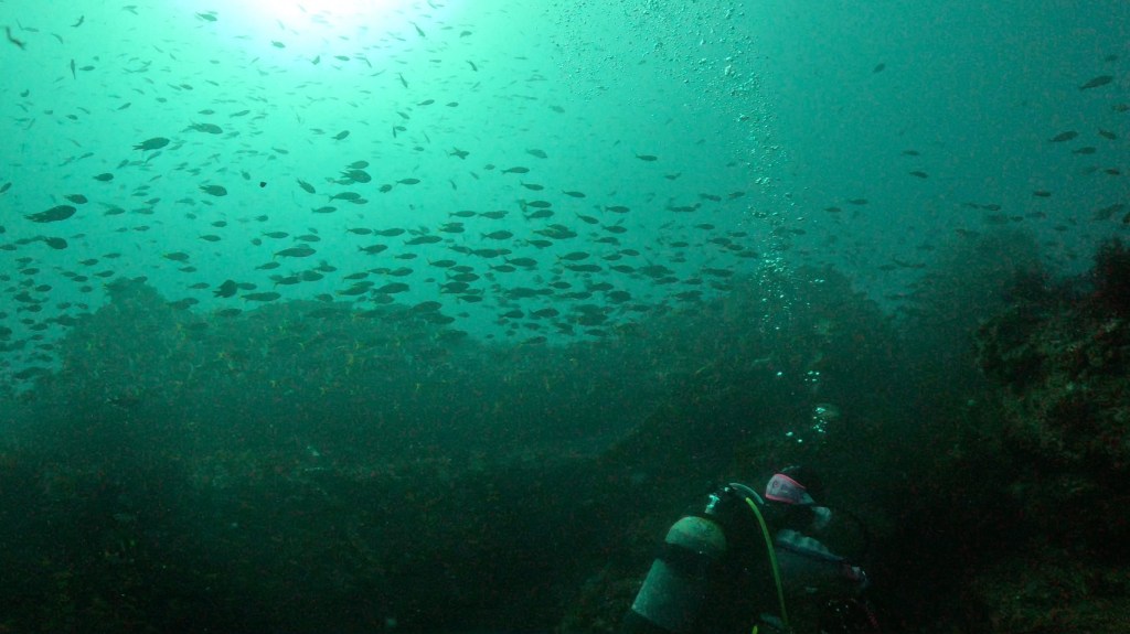 下にはカジメ林がひろがってるので魚以外にもワイド面白いっす。