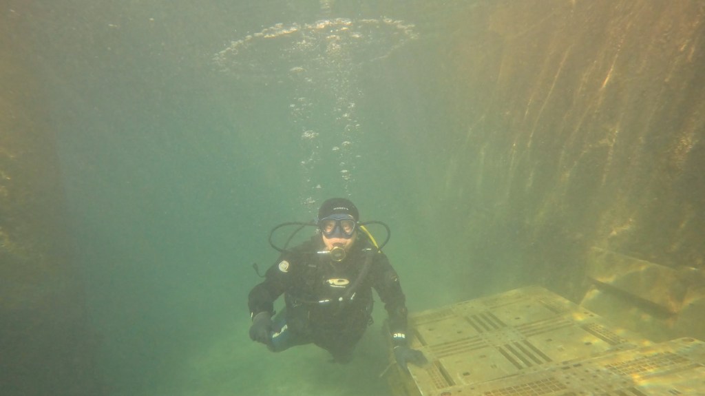 エントリー口では、スーツ内に水が入ってこない構造なので。
