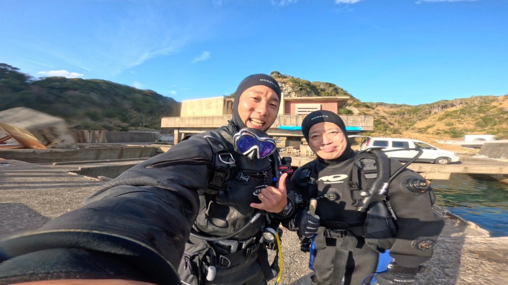 ドライスーツは体が濡れない分。潜り終わった帰りの運転も楽になります。
