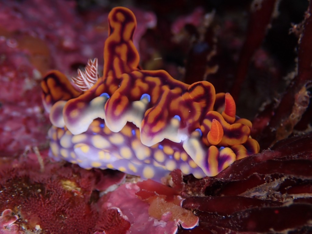 キイロウミコチョウ・ミツイラメリウミウシ・ミチヨミノウミウシ・ヒロウミウシ・スミゾメミノウミウシ。海藻には、極小のクロヘリアメフラシなど。