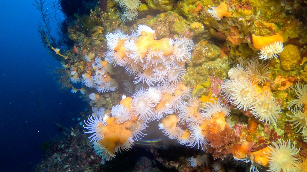 ウスアカイソギンチャクの群生。