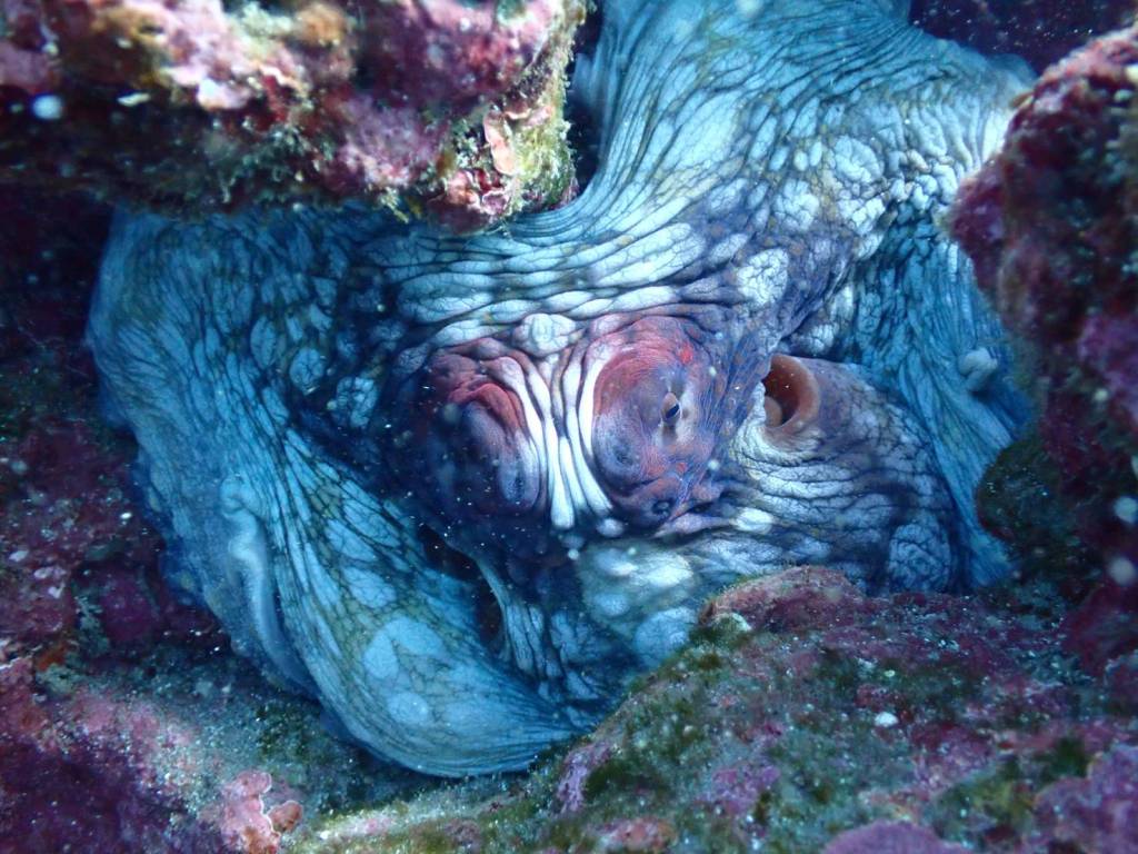 マダイ、ワモンダコの良いサイズを観察。